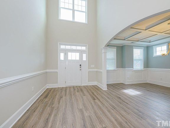 WOW! 6 BRs or 5 w/ bonus rm. 3.5 BAs. ASK ABOUT INCENTIVES! Can complete backyard fence. Spectacular 2 story foyer features balcony overlook! Large rooms for entertaining displayed through wide cased openings & give spacious feel throughout. Quartz countertops, butler's pantry, 2 dining rms. Main lvl master tucked away for privacy. Huge laundry room, pocket office. Covered front/back porches + patio. 2 car G. Walk to Knightdale Station Park, dog parks, playground, YMCA pools, nature areas, downtown shops.