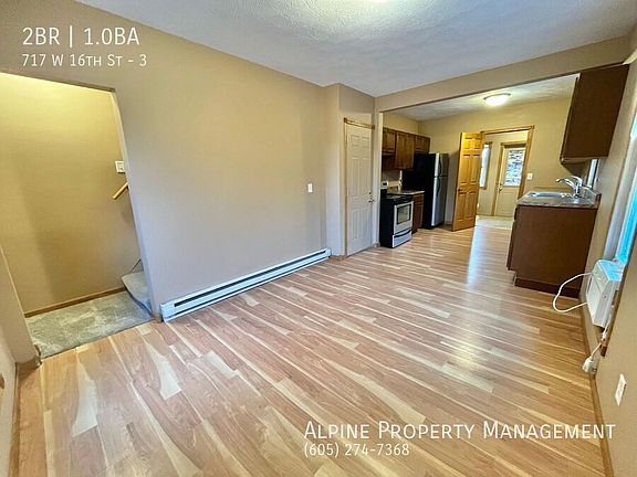 Schedule a tour today of this very affordable 2 Bed/1 Bath second floor triplex apartment at 717 W. 16th St. in Sioux Falls!! Conveniently located just southwest of downtown you have easy access to all that downtown Sioux Falls has to offer. The unit comes equipped with washer/dryer, as well as all stainless steel refrigerator, stove, dishwasher in the kitchen! There are two entrances, one of which is private with a back deck and stairs leading out to the off-street parking in the back alley. Bathroom has a stall shower, and the master bedroom is quite spacious! The unit also has window A/C provided, laminate flooring throughout the kitchen/living area, and carpeted bedrooms. - $50 application fee per adult - $765 security deposit - Pet Friendly (1 max) and Non-Smoking - Section 8 accepted if your voucher meets the marketed rent amount - Tenant pays electric (heat) - Landlord provides water, garbage, lawn/snow care! - Alpine Benefits included for $25/month extra (see website for full details) Professionally leased and managed by Alpine Property Management Garbage Lawn And Snow Care Non Smoking Online Tenant Portal Pet Friendly 1 Pet Max Private Entrance Stall Shower Stove Washer/Dryer In Unit Water Water Garbage Lawn/Snow Included With Rent!! Window A/C Provided
