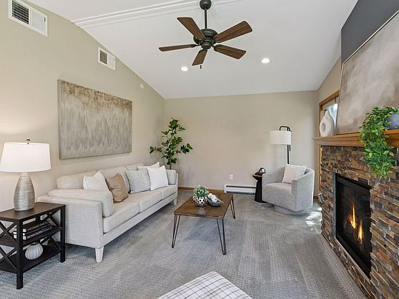 vaulted ceilings, large windows and a cozy fireplace. Enjoy the wonderful views from your picture window