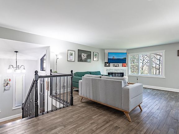 TRANQUIL and BEAUTIFUL describe this Bi-Level in 2 WOODED ACRES. The scenery is gorgeous with a tree lined drive that leads to the home. The home is surrounded by various trees; beauty, nature, a large wood deck, concrete drive into garage, a POLE BARN and 3 SHEDS. Walk into a spacious foyer. Walk up to the Open Concept updated kitchen with a large island, and living room with an electric wall fireplace. All stainless steel appliances will remain along with the washer & dryer. Lower level features a very good size rec room. You will not be disappointed!