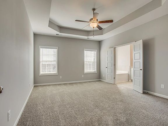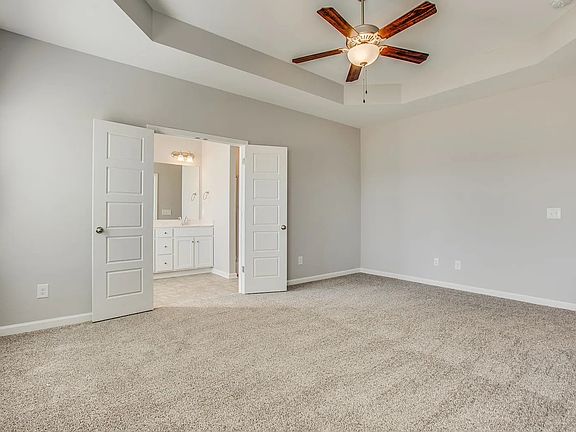 ASK ABOUT OUR MOVE IN SPECIAL Free rent PLUS free 60" TV with approved credit Discover the perfect blend of elegance and comfort at Derryberry Estates. This delightful single-level home, tucked away on a peaceful cul-de-sac, offers an open-plan layout that effortlessly connects the great room, kitchen, and dining area, creating a warm and inviting space for everyday living. Bask in the natural light that fills the home, enhancing its bright and airy ambiance. The master suite is a true retreat, featuring a luxurious ensuite with a double vanity, a relaxing soaking tub, a separate shower, a linen closet, and a generous walk-in wardrobe. Step outside to the covered patio, where you can extend your living space and enjoy alfresco dining and entertaining year-round. Don't miss your chance to experience the unparalleled comfort and style of Derryberry Estates. Schedule your tour today and make this exceptional home yours!