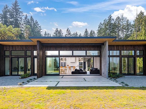 Enjoying the ultimate in privacy and quiet, with its own slice of waterfront, this west coast modern home is the epitome of chic and style. Basking in all-day sun and with ocean views across Trincomali Channel, the 2600+ sf residence sits atop its 5 gently sloping acres. The clean lines of this singular almost new residence reflect the surrounding firs, the accessible shoreline and rocky beach below. Living and dining areas, with retracting glass doors to the patio, are open to a showpiece kitchen, large island and pantry behind. Primary suite enjoys a wall of windows and sliding doors, walk-in closet and stunning ensuite. At the rear is a family/media room and home-office; spacious studio/gym is across the breezeway. guest space sits oceanside, perfect for guests. Breath-taking in its natural setting, but also in design and construction: custom Italian marble plaster finishes, striking concrete support wall, heated concrete floors, multiple "smart" home features.