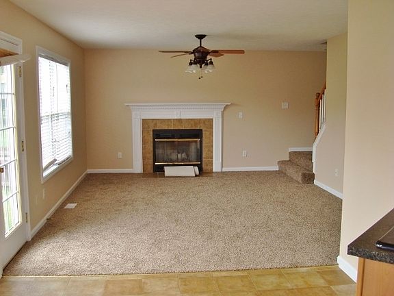 NEW CARPETING! Don't miss this large home for sale near Heartland Golf Course! Home features formal dining room, formal living room, open kitchen and family room with fireplace, breakfast area, and large laundry room all on the main floor. Upstairs is the large master bedroom with large master closet and bathroom featuring a whirlpool tub and two other bedrooms. The basement has a finished area that could be used as a family room or bedroom as well as a full bath!