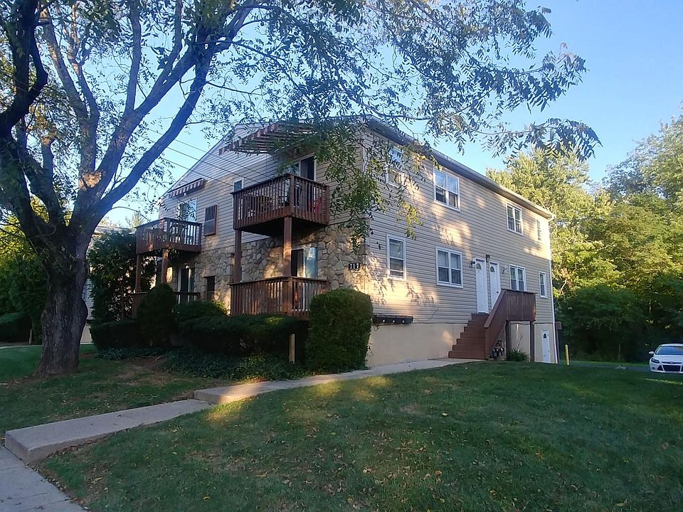 There is 1 parking space in shared garage and 10 x 10 storage area. This unit is on the second floor that backs up to the woods, so it is quiet and you can see deer, foxes and wildlife walking through the woods from either one of the balconies. The neighborhood is in Lansdale (discounted utilities) so you're close to restaurants & shopping, yet the neighborhood is tucked in a private and secluded residential neighborhood. There is a half bath off the master bedroom. Full size bathroom enters from the hall. Updated kitchen. Hardwood floors in living room, kitchen and hall. Plenty of storage. Owner pays for trash and sewer. Tenant pays for utilities, cable. Unit has washer dryer in basement storage space. Non-smoking unit.