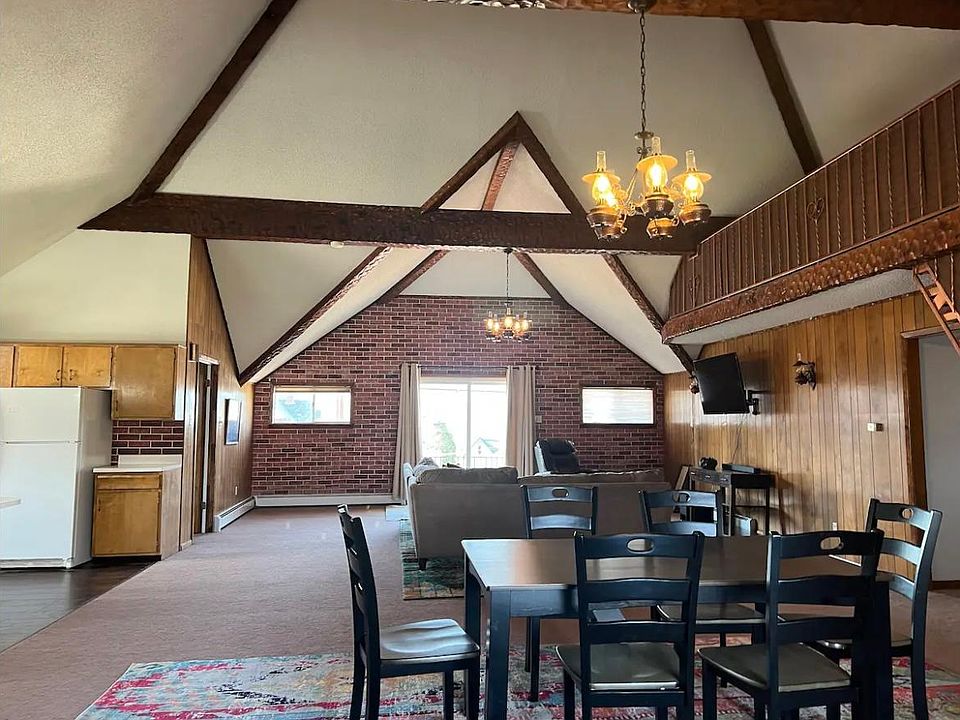 Spacious, 70's vibe historic carriage house. The place has a large open concept with beautiful vaulted ceilings and a small outdoor balcony. There is an interior and exterior entrance and the apartment sits atop a large, heated 6 car garage also with a bathroom (garage space also for rent; contact listing agent for details). The apartment has a generous kitchen, large living room, washer and dryer, 2 bedrooms, 1 full bath with tub, and a laundry room. It also has private off-street parking and beautiful views. It shares the same huge property with the historic Ed West mansion in a quiet, beautiful neighborhood walking distance from downtown Trinidad and Trinidad State College. The apartment can be rented fully furnished for a total of $2000 a month . All utilities included except internet. No smoking inside. Year lease preferred. Certain pets allowed for a monthly fee.