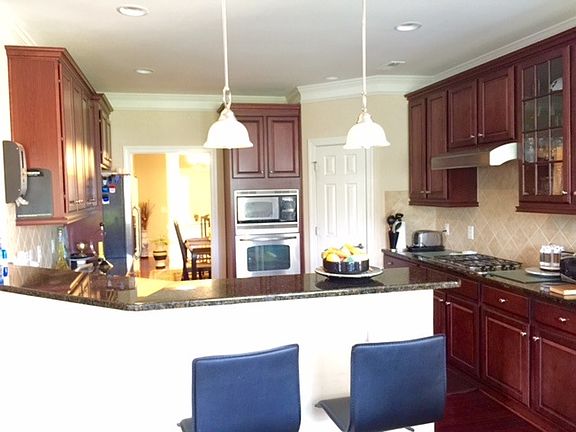 Beautiful home. 4 bedroom + large bonus. Great location and wake county schools. Close to RTP, major highways, shopping centers. Swim pool community with large club house and play area. Hardwood entire first floor except bedroom and bath. Tiles in all bathrooms. Large master with trey ceiling, sitting room, garden tub, his and her walk in closets and walk in shower. Screened porch with tile floors to relax and enjoy nature. Large Family room with built in cabinets. Gourmet kitchen.