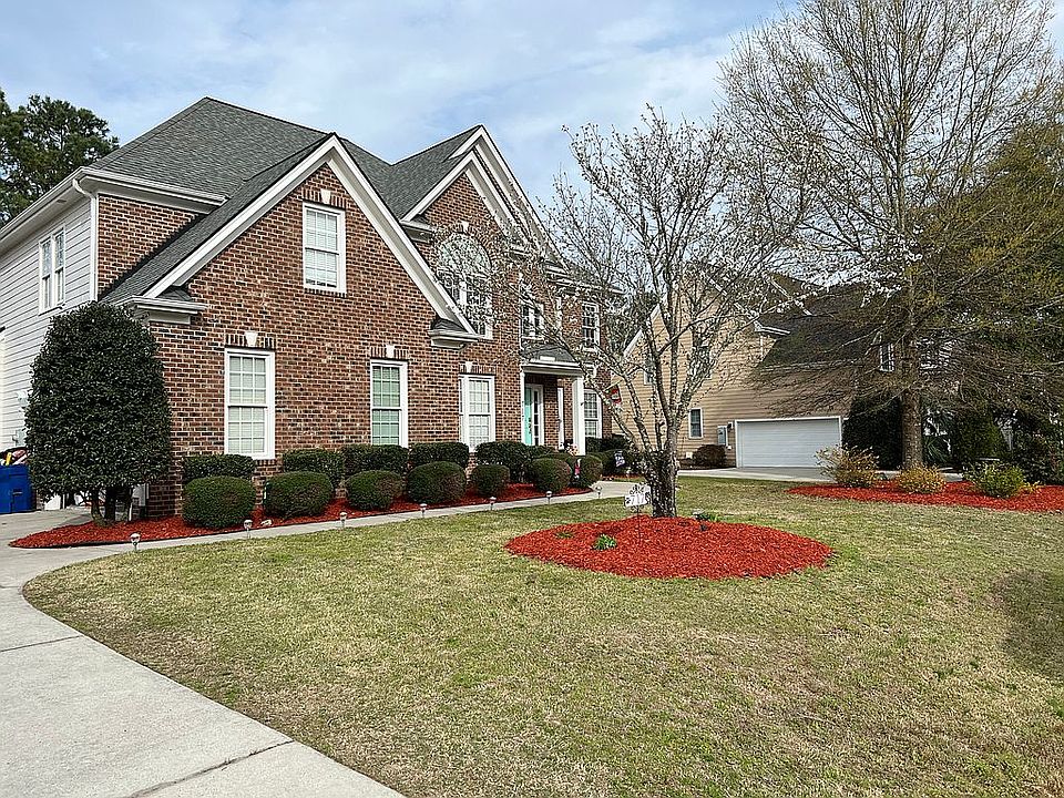 Welcome home! Situated on a large lot in the desirable community of Vineyard Plantation, this well maintained two-story home has everything you need and more! With prime location in the Porter's Neck area, just minutes from shopping and dining at Mayfaire Town Center, a short ride to the beach, and easy access to I-40. This home boasts an ideal floor plan with 5 bedrooms, 4 full bathrooms, and a ton of storage space. Downstairs you will find a lovely den with floor to ceiling windows flowing into a formal dining room. The kitchen is a chef's dream with stainless steel appliances, a center island cooktop, and tons of counter space and cabinet space. The living room is anchored by a gas log fireplace. Finishing off downstairs is one bedroom/office and a full bathroom, Traveling upstairs, you will find a large family room/second living area, 3 additional spacious bedrooms with walk-in closets and two full bathrooms. The master suite is also on this level and features trey ceilings, and an en-suite with his and her vanities, a soaking tub, a separate walk-in shower, and a huge walk-in closet.700 sq ft. of attic storage space. Outdoor features include a Screen Porch, large deck overlooking the private, wooded back yard with mature trees No city taxes! HOA amenities include a community clubhouse and pool! Home was completely remodeled in 2021. With all new fixtures,paint,Hardwood was also updated. Call Tommie.