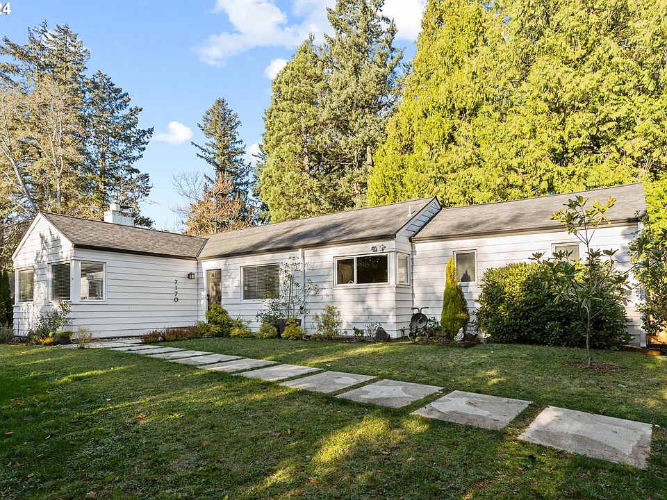 This wonderful West Slope ranch home offers period charm + modern efficiency, a convenient location with easy access to amenities, and design through every room! The home has been painted inside and out. Lighting from Schoolhouse, designer colors and custom built-ins make the home feel custom and comfortable. Three cozy bedrooms on the main level with loads of natural light bring the outside in. The bathroom, remodeled in 2022, features a custom walnut vanity and modern tile. The cozy living room with wood paneling, built-in cabinetry, a wood-burning fireplace and warm oak floors creates an incredibly cozy spot for relaxing. Through the dining room with French doors and a garden view is the kitchen. Granite countertops, gas range, new backsplash and appliances and walnut shelving all make this kitchen functional and modern. The unfinished basement has potential for remodeling with a tall ceiling height, or just a convenient spot for storage and laundry. The systems of the home have been meticulously maintained and updated: gas furnace (2014) and central AC (2024), water heater (2018), composition roof (2015). Recent drainage work and a new sump pump keep the basement dry and comfortable. Stepping outside into the park-like yard, you'll find everything you need. Two sheds, one wired with electricity. An electric gate that opens with remote to allow secure RV or extra vehicle parking. Granny Smith & dwarf honeycrisp apple trees, blueberries and new raised garden beds surround the home. Pavers and a new deck extend the living space outside. The swingset and incredible custom-designed modern two-story playhouse complete this dreamy yard space that you'll never want to leave! Come and visit this incredible oasis located in the coveted Bridlemile school district with easy access to freeways and amenities.