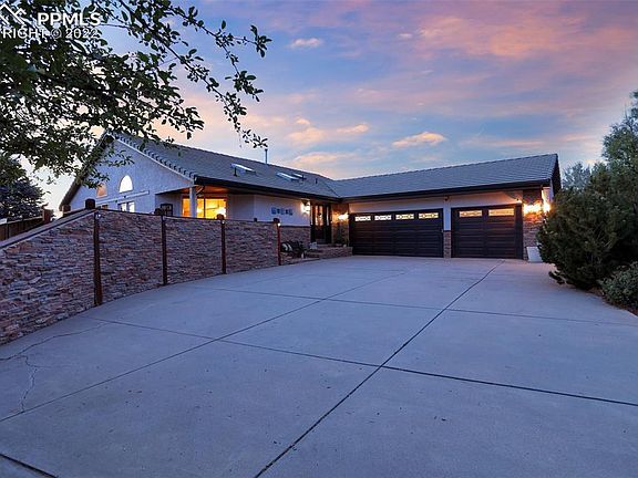 Welcome to this gorgeous one of a kind home in the Peaceful Valley Estates on over half an acre. If you are an entertainer This 4 bed 4 bath 3 car oversized garage home leaves nothing to be desired with its beautiful upgrades and spacious rooms. Nothing screams Luxury more than a beautiful front entryway leading into an open and airy living room area with stunning custom stone floors, vaulted ceilings and an original wood burning stove. The living room opens into the dining and kitchen area with tons of natural and luxury lighting. The kitchen is updated with granite countertops and stainless steel appliances. Continuing through the main level, you will find the master bedroom with adjoining bathroom, tons of storage space, not one but two walk in closets. The dreamy walk-in closet features custom shelving and an island. My favorite feature of the master bedroom is the walkout to an enclosed patio with a fireplace and unbelievable unobstructed views of Pikes Peak, everyone could use this tranquil space in their lives. To finish off the upper level is a second bedroom/office space in the hallway with a full bathroom for guests. As you walk downstairs, you will see a large living room area with a gas fireplace, and it's a walkout! The game room space features a wet bar with gorgeous brick accents, custom lighting and shelving, a wine fridge and storage with a granite bar top. Also this space has more than enough room to play pool while watching the big game, is this not the American Dream or what. There are two bedrooms and a half bath at the bottom of the stairs. Both bedrooms have huge walk in closets, and tons of space. The custom laundry space makes doing laundry again! a 3/4 bathroom completes the basement. If you love the outdoors and tons of space between you and your neighbors this home is for you. The backyard features a gorgeous deck, outdoor fireplace and plenty of large trees for privacy. Come see this gem of a home quickly, before it's gone!