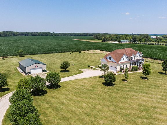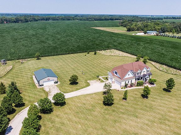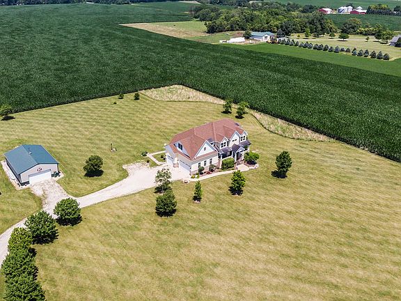 Stunning 5 Bedroom Custom Built home with over 4500 sq ft of living space on 20 acres of land plus a 1350 Sq Ft Pole Barn with cement floor.**Zoned Agriculture with incredibly LOW TAXES plus 15 acres are leased to farmer which generates revenue to almost cover the Tax Bill** This dream home has everything you will need from a awesome Full Finished English Basement, with 10 FOOT Ceilings tons of bright windows, in floor heating, a full Wet Bar, Bathroom, Game room + spot for a pool table in awesome Rec room. Incredible Theater Room with sound system, projector, and screen. Spacious Kitchen with gorgeous hardwood floors, large Island, Granite Counters + 2 Pantries. Master Suite with hardwood floors, large walk in closet, stunning master bath + soaking tub. Large 2nd bedroom with awesome play loft, 3rd Bedroom has a full private bath, hardwood floors + walk in closet.4th bedroom has 11x9 walk in closet. Home has 400 amp service. Pole Barn / Utility Building could also be used as 2nd garage with 2 over head doors, 100 amp service with led lights, multiple outlets and garage door opener. The 3 car garage attached to home has 14 ft ceilings, in floor heating, plus a hot+cold water spigot. Home has 9 ft ceilings, 2nd floor laundry, Dual Zoned HVAC, Hardie Board Siding and MORE!!! Close to Morris for shopping, boating and fishing on the ILLINOIS RIVER and easy access to Interstate I-80