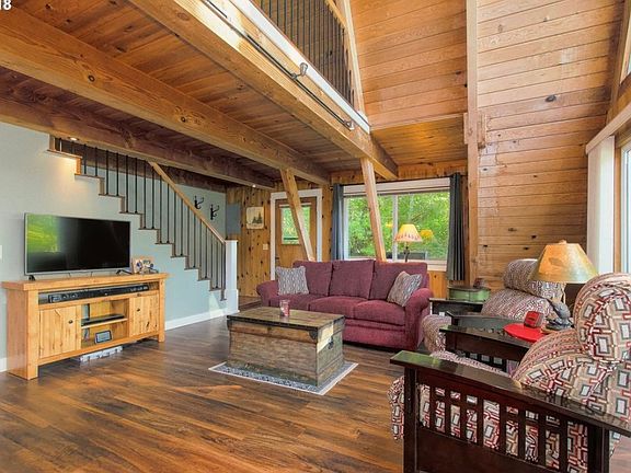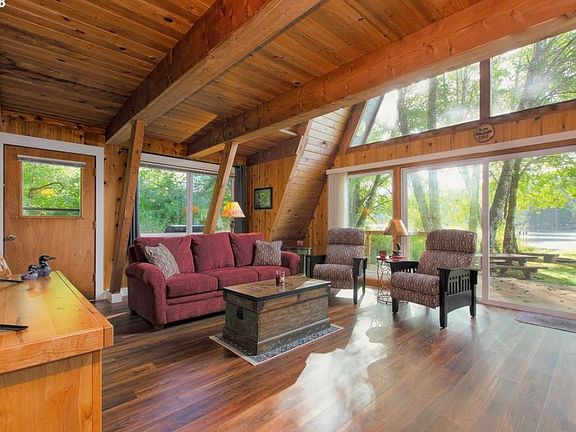 Beautiful, well maintained waterfront Cabin in prime location. Large deck with gorgeous lake views. Enjoy the outdoor fire pit, play horseshoes, go pedal boating, fish from your own dock or watch salmon spawn up the creek that runs through the E side of the property. The wooded neighboring lot can't be built on. Propane stove for cozy winter nights. Easily sleeps 8. Weekend getaway or live year round. Only 90 minutes from Portland.