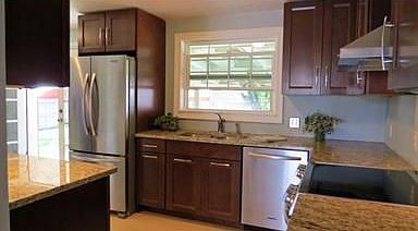 New kitchen, slab granite, stainless appls, range w hood, buffet wall w microwave, wine rack, dining area and bamboo floors. Hardwood floors. Remodeled bath. Theater room in bsmt w 7 speakers prewired, sound insulated & Vioflame fp. Non-conforming bdrm. Huge covered deck w lighting. Newer roof, windows, lighting, doors. Light Rail will be blocks away.