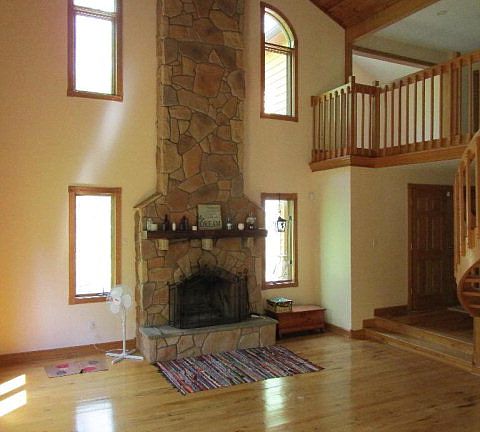 Stunning, private retreat-10 wooded acres on quiet country road. Over 3650 sq ft of living area plus lower level. Floor to ceiling wood burning stone fireplace. Gorgeous kitchen, ss appliances, built in oven & Jenn Aire cooktop. Charming breakfast nook with tongue & groove ceiling overlooks the backyard. Family room has built in entertainment center & french doors that open to large back deck for easy outdoor entertaining. Marvelous area for dining room/den has wainscoting. Lovely hardwood floors & tile. Solid wood winding staircase leads to 2nd floor master retreat. His & her walk-in closets, en suite has Jacuzzi tub & walk-in tile shower.