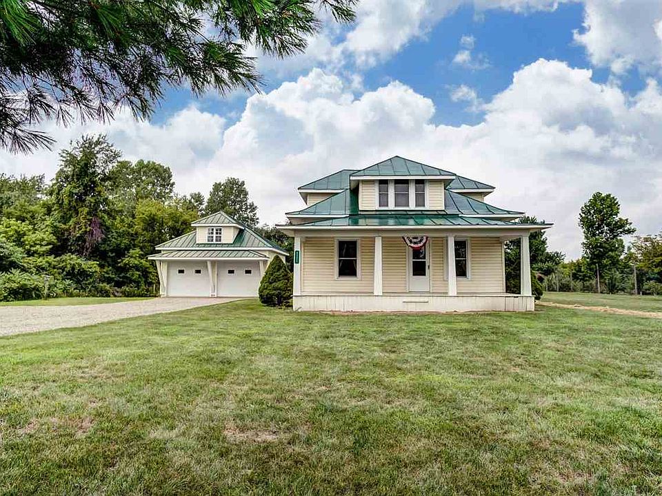 One of the most unique homes around, this house captures the feel of an older, well-kept country house with the modern poured concrete basement that is finished in beautiful native hardwoods. There is a bedroom and bath on the main floor along with a spacious great room. The upper level has two bedrooms and a large full bath. There are modern mechanicals in a separate basement room that has access to the outdoors. The garage is finished in hardwoods as well. Conventional septic and a 4" well, metal roof, and a quiet country setting.