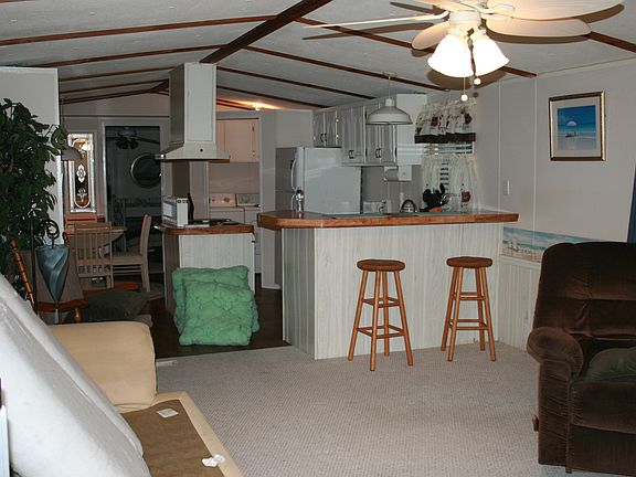 3 bedroom, 2 bath single wide on a large private lot. Has large front deck, 20 x 20 wired storage building with carport, and is completely furnished with washer and dryer. The layout is very open and furnished with a beach theme.