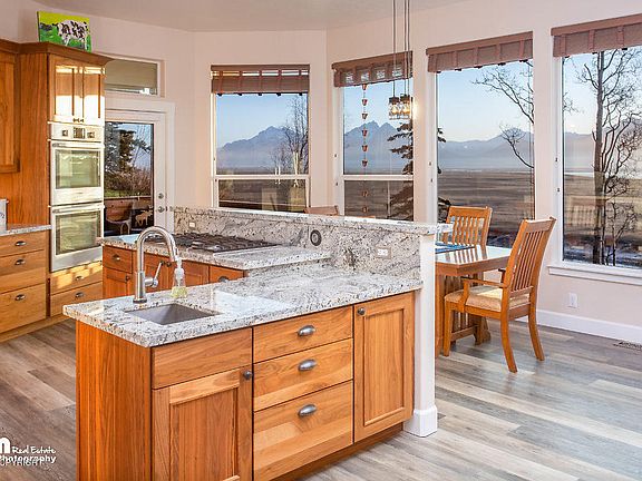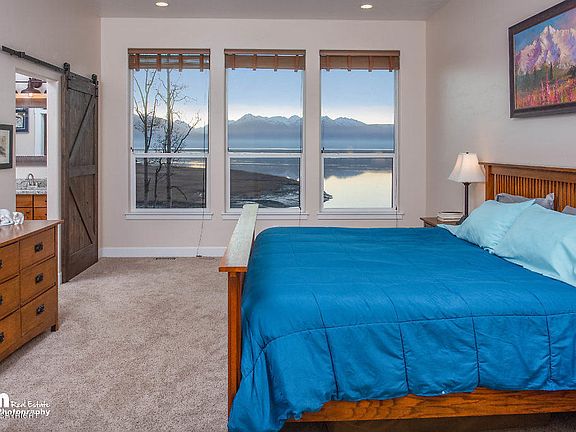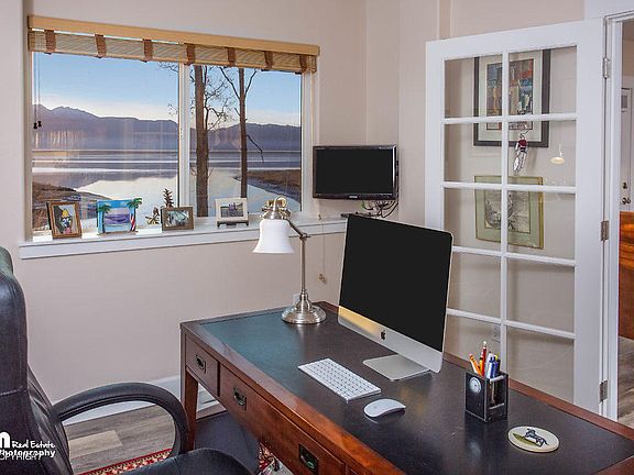 THE BEST VIEW in MatSu! This luxury home has so many great features that you may not notice when you see the home, because you will be looking out the windows at mountains, the inlet, and Cottonwood Creek. High end finishes abound, gated community, huge garage with a specially-designed dog wash area, separate office space, and a double fireplace are but a few of the wonderful features. Click MORE