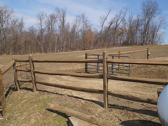 Beautiful 5.86 Ac. mini horse farm. Bring some horses! 4 Bd, 2 1/2 Ba, custom built home/barn combo sitting on hilltop setting with stocked pond. Open floor plan with gorgeous hickory cabinetry & corian countertops. Solid 6 panel oak doors with hardwood, tile & carpeted floors. 5 heated horse stalls I stable area below house. This is one wonderful home! There's so much more to this simply stunning home, you won't want to miss. Beautiful deck on side of home. Full standby generator, maintenance free aerator.