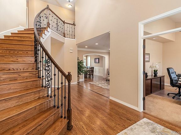 Gorgeous Castle Pines 4 bed/3.5 bath home ready for your family. Stunning office / study with French doors for work and / or privacy. This beautiful home has been updated throughout that includes new lighting, paint, carpet, new custom woodwork/wainscot and molding. Check out the gorgeous wood staircase added in the foyer & upstairs hallway. Also the wrought iron spindles add just the right amount of ambience to the entry / foyer. The surround sound in the family room is also wired throughout the house, which is great for movies and sporting events. Come see the newer stainless steel appliances and huge pantry. The living area is grand with lots of light and vaulted ceilings. The owners of this house invested 20k plus on Hunter Douglas Plantation clear-view shutters throughout. Also, this move-in ready house just had a brand new roof installed one week ago. This house is just one in half blocks away from the recreation center that has an Olympic size pool, rec area, volleyball and tennis courts.