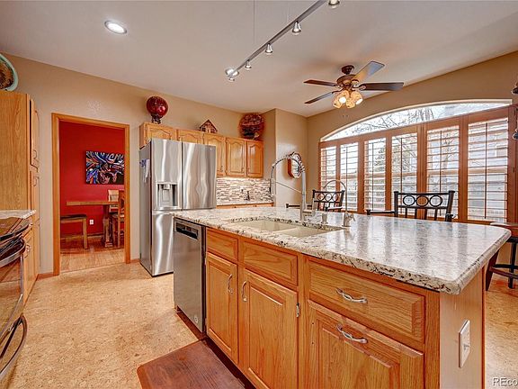 Impeccable south Littleton updated home with 4 bedrooms upstairs. The primary suite is large and in charge with a remodeled ensuite bathroom containing a beautiful shower and soaking tub. Check out the walk in closet with built ins. The main floor office could be a 5th bedroom as there is a closet and window in it or keep it as an office. A full bath is right there so it's perfect for in-laws or other guests that don't want stairs. The bamboo and cork flooring in this house makes for quiet movie nights in the finished basement/media room. The Bose sound system makes Top Gun sound awesome. Kitchen updates include leathered granite counters, a large kitchen island, gorgeous stainless steel appliances and pull out shelves in the cabinets. The family room is adjacent with a gas fireplace and door leading out to the deck and soothing hot tub. The low maintenance yard is perfect for pets yet there is no grass in the back to mow as there is artificial turf that always looks good. The back yard is fully fenced. The living room and dining room are perfect for all your music nights and holiday get togethers. You'll find tons of beautiful storage cabinets in the garage and laundry room. The stone coated steel roof should be good for decades. There are so many upgrades including pocket doors in the basement media room, ceiling fans throughout the house, TV's on mounts that stay, so don't wait to see this beauty. Easy walk to King Soopers, other shops and restaurants. Close to Chatfield Reservoir. For more pics and floorplans go to www.7171WAlder.com