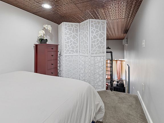 This one-bedroom loft is right next door to a bakery! The building is a mix of businesses and other rental units. This unit has its own private front door and the entire unit to yourself. -When you reach the unit, you will immediately see the colorful curtains in the windows of the living room. When you walk into the unit, you will see a brand new loveseat as well as the 55" HD TV that is Roku enabled. The corner windows also have bench seating. Because of the number of windows, this unit lets in plenty of natural lighting. -On the wall by the TV is a tall table seating area for 2 people. The table can also fold out to create more space. There is also a large wardrobe where you can hang your clothes and store your items. -Further into the unit, there is a fully stocked kitchen, with a Keurig, coffee and creamer. The kitchen has a full-sized oven, range, microwave, refrigerator and dishwasher. It is also fully stocked with utensils, plates and cookware so you can cook your meals. -Next to the refrigerator is a combination washer/dryer! We provide washer detergent and dryer sheets for your use. -The bathroom is just through the kitchen on the other side, with all the amenities from shampoo/conditioner, hair dryer and plenty of towels. It is updated with a lovely bowl sink and stand-in shower. -The unique stairs into the loft area are to the left of the kitchen. These stairs are semi-steep and can be difficult to climb, however, they are custom made of gorgeous wood! They add character to the lovely loft. -At the top of the stairs is the bedroom. The loft bedroom has a Queen bed and dresser. With plenty of extra pillows and blankets, you are sure to be comfortable. The loft has an open railing, and the bedroom looks out into the rest of the unit. There is a partition for some added privacy and to block some light. -This unit has access to free high-speed wifi and its own heat and air conditioning. Lease terms is month to month and includes all utilities.