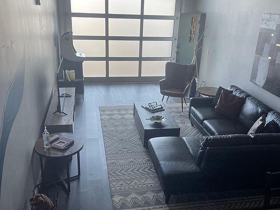 contact to discuss variable rental length options This unique space shares a building with a wine lounge, bakery and other rental units. The industrial-style loft boasts a fully stocked kitchen, spacious living area, washer/dryer, and loft bedroom. -Immediately inside the door is the living room with a large, leather couch and 55" smart TV with Roku. The garage door is to the right, letting in tons of natural light, but with fogged panes to ensure your privacy. Newly added is a Golden Tee Golf arcade game . -Behind the couch is a dining table that seats 4 people. There are also 2 stools at the kitchen countertop for extra seating. -Further into the unit is our fully updated and fully stocked kitchen. We have a full sized stove with glass top range, refrigerator, microwave and dishwasher to keep all the provided cookware clean. -Further down the hall, there is a washer/dryer duo in the hallway for your use. -Just past the washer/dryer is the full bathroom. Beautifully updated with clean white countertops -Up the carpeted stairs in the living room is the loft where the bedroom is. At the top of the stairs to your left you will find the work-from-home desk. This unit has high speed wifi so you can work wherever you want. The desk also has a partition behind it to block some light and give some privacy. the large King bed. With plenty of pillows and extra blankets, Since there is not a closet, we have provided a metal rack with coat hangers as well as shelves for your clothing and shoes . -When you turn around and face the stairs, you have a lovely view of the large garage door and the living area. The space has high ceilings and is very open as well as being well-lit. utilities covered with wifi 250 cleaning fee comes out of security deposit.