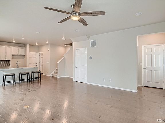 This beautiful, energy-efficient, smart technology, 2-story home is move in ready! Welcoming covered front porch invites you into the home with a open-flow floor plan from the family room to dining and kitchen makes for perfect entertaining. The kitchen features stainless steel appliances, gas stovetop, and granite countertops. A large size laundry room rounds out the main level with a half bath. Upstairs the primary suite is light and bright with a walk in closet, en-suite 4 piece bathroom with granite counter top, double sinks and oversized shower. Two more bedrooms share a full bath and a loft perfect for a home office. The basement is a blank canvas waiting to be completed with tall ceilings. Not to miss, is the private fully fenced side yard with pet turf for all year greenery and low maintenance. Bonus features include a Springwell Water Filtration System, Aprilaire Steam Humidifier and a 50 amp plug for an electric vehicle. Conveniently located near Castle Rock, Lone Tree, and DTC with plenty of restaurants and shops in between. Plus countless trails for hiking, biking and much more!