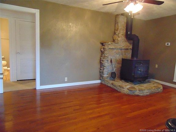 Here's your chance to own a piece of the American dream! A little place in the country on almost an acre with a 2 car garage! Attached to the garage is a heated 23x12 room - great space for a home office or business or just an awesome MAN CAVE! The large driveway offers lots of parking space for a boat, RV, big truck, etc. Newer roof on garage, many updates in the home, including NEW HVAC, some updates to kitchen, beautiful tiled tub/shower surround in bathroom, nice cabinets in laundry room, wood stove in Liv Room, some hardwood floors. Covered front porch, patio area out back with firepit and beautiful country setting. On a good road, quiet area, convenient to Madison, Hanover, Scottsburg. Tiny house in back of property does NOT convey. Dog pen is negotiable. Don't wait to see this one or it will be gone! This sale is subject to seller finding acceptable home to purchase.