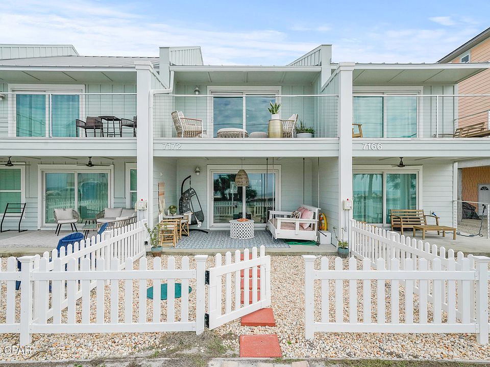 CURRENTLY UNDER CONTRACT, SELLER WILL CONSIDER BACKUP OFFERS. UNOBSTRUCTED WATER VIEWS WITH DIRECT BEACH ACCESS!! This newly rebuilt 2br-2.5ba fully furnished townhome offers 1300 sq ft of modern coastal living with Gulf views that will remain forever. This home sits across and adjacent to a perpetual conservation area which can never be developed. Welcome to this stylish chic coastal cottage, with modern touches and natural accents. You will enjoy open-concept living with the kitchen and dining area on the first floor where you can enjoy spectacular beach views. The kitchen features sleek quartz countertops, kitchen island with pull up seating & stainless steel appliances while the Coretec flooring runs throughout. Guests have a half bath on this floor for convenience & the bedrooms are located upstairs for added privacy. The primary bedroom boasts a balcony overlooking the Gulf, ideal for enjoying your coffee and watching the dolphins in the surf or taking in the most spectacular sunsets you have ever seen. With new roof, AC, hot water heater, updated electrical & many more upgrades makes this an ideal beachside retreat or you can take advantage of this already income producing investment. Located in the desirable X flood zone with No HOA dues, it's just minutes from Mexico Beach & Port St Joe, offering easy access to both. St Joe Beach is known for its pet-friendly white sand beaches that you can stroll the beach for miles. Check out the 3D tour & start LIVING THE BEACH LIFE!