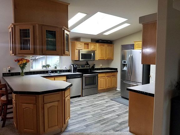 Amazing wooded residence with 5 acres at the end the road, providing total privacy and serenity. A 24'x24' cover as well as a detached two car garage provide parking for RV's, boats, trailers, toys, storage. This property has a 6 month lease, then is month to month. Renter is responsible for utilities (water, electricity for heating). Clothes washer and drier not included. No smoking, outdoor ONLY pets considered.