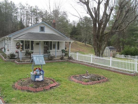 Country home with new metal roof and new components for the central heating and air. This 2 bedroom, 1 bath home offers spacious rooms, an enclosed back porch and lots of various storage buildings and an open shed for storing lawn equipment, etc.