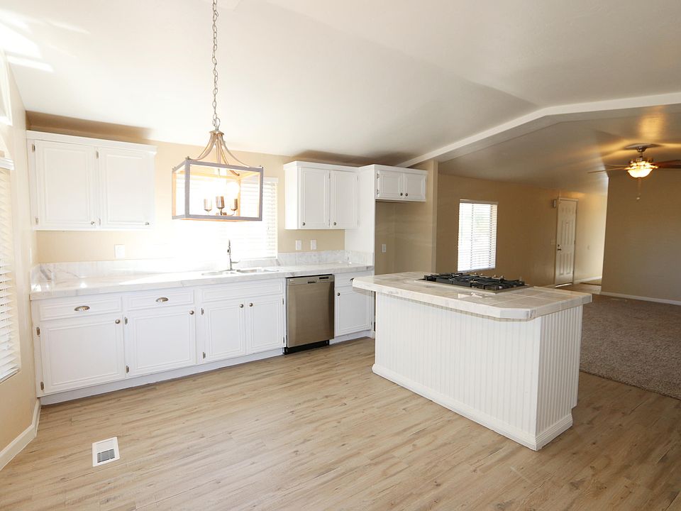 Seller will counter or accept offers between $134,000 and $150,000. Spacious 4 bedroom 2 bath home on over an acre! Nice bright floor plan with ceiling fans, built in cabinets/desk, huge kitchen with island that opens up to living area, dual sinks in master and neutral flooring throughout. Beautiful green trees and vegetation, circular driveway, carport, oversized deck outback, covered porch in the front and storage shed. A must see. This one won't last!