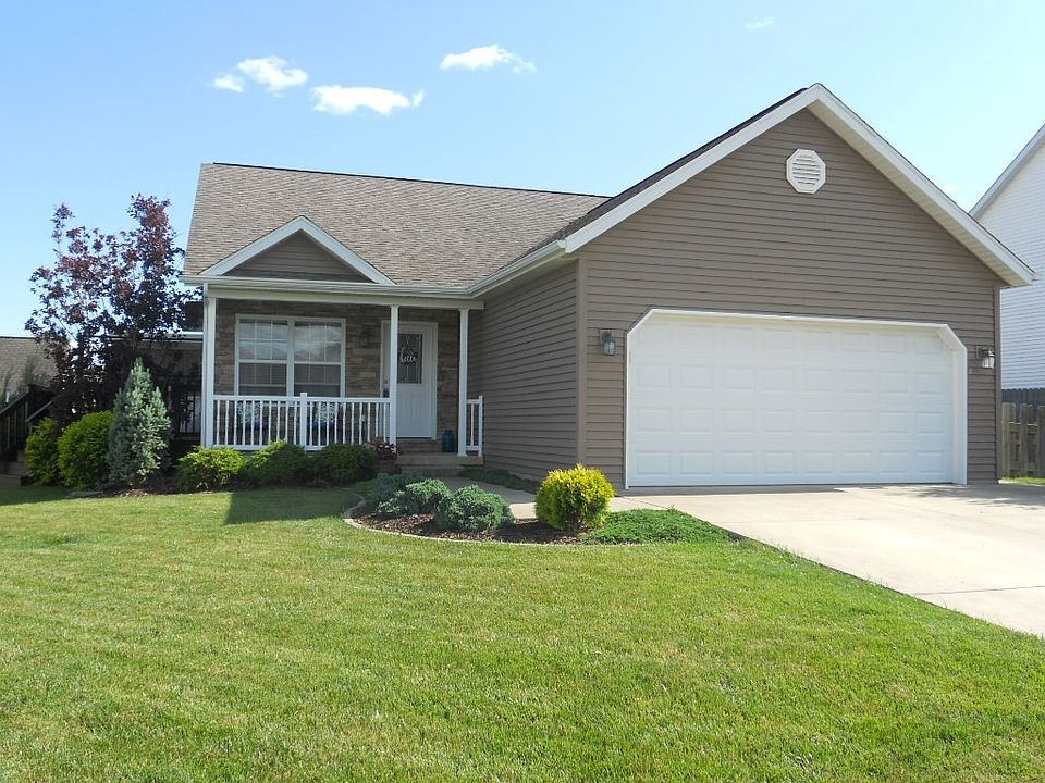 Outstanding curb appeal, beautifully landscaped & fenced yard are just the beginning of this well maintained ranch. New EZ Click waterproof laminate floors (no carpet at all) & fresh paint are found inside. Cathedral ceiling in living room enhances the spacious feel & open to eat-in kitchen, pantry is in Laundry room. 3 bedrooms at end of hall, closets have added storage shelving. Master has cathedral ceiling and walk-in closet. Sellers added an outdoor closet (3.5 X 8) to hold gardening tools & deck furniture, also serves as privacy screen at deck. Deck is freshly stained & has a clever built-in bar counter. The trendy galvanized container gardens hold tomatoes & strawberries & are included. Shelving in the garage is included. Exclude: a handmade hanging shelf system over the desk in office. No shows until Sat, 6/15 at noon.