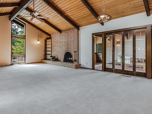 Custom home designed in 1967 with an abundance of windows and skylights, and an easy flow from room to room. Welcoming covered entryway. Living and dining space w/ vaulted wood ceiling, floor-to-ceiling window, and gas fireplace. French doors open to the spacious Sun Room with 2 skylights, wood plank & beam ceiling and sliding glass door. Updated kitchen with 2 skylights, beautiful slab counters, undermount sink, stainless steel appliances. Fantastic main level family room offers vaulted ceiling, custom floor-to-ceiling bookshelves topped by 2 skylights, wood burning fireplace, corner windows and sliding glass door opening to the huge patio area. 3 bedrooms and 2 baths on the main level. Basement offers a 2nd family room, laundry area that leads into bathroom with shower, and plenty of storage space. Professionally landscaped backyard. Amazing outdoor entertaining space w/ expandable awning over the deck plus a stamped concrete patio. High-quality home in a great neighborhood. NOTE: Square footage in Public Records is not accurate.