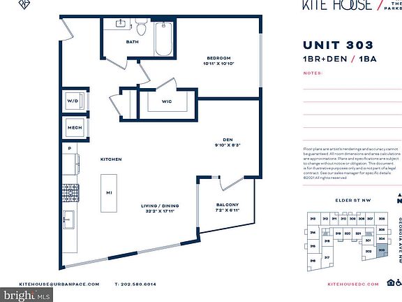 Move in Next Month! Spacious corner 1BR + den, with view of open space, landscaping and huge trees. Great closet space. This condo features an open kitchen complete with a movable island, stainless steel appliances and contemporary finishes. Set up your work from home space in your den and enjoy relaxing after a long day in the primary suite complete with spacious walk-in closet and ensuite bath. Nestled in The Parks Marketplace, Kite House offers the perks of an immersive green oasis paired with direct access to choice shopping, dining, and entertainment options. Savor the perfect balance whether you're picking up the pace on a trail run or taking it down a notch with picnic provisions from Whole Foods on the Great Lawn. Jinya restaurant and bar Now Open! Garage parking available for $40,000; EV parking $48,000
