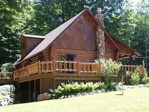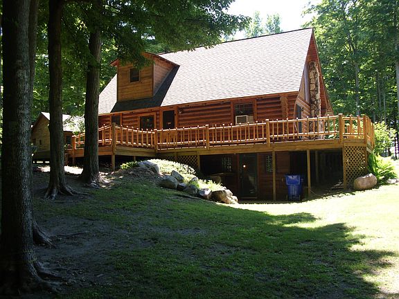 Drive through treed canopy driveway to your Up North retreat or hobby farm! Custom built log home nestled back off the road. Beautiful wooded 33.07 acres m/l. Not too far from Butterfield Creek, State land, and Muskegon River. Room to store all your toys! 1 1/2 car detached garage that seller uses to park vehicle in and for some storage. Do you have a hobby that you need a lot of space for or just like to work in the garage? The 26x40 detached garage/workshop may be exactly what you are looking for! Do you have bigger recreational vehicles that need to be stored? Check out this massive 42x30 pole building! 2 large doors and a 12x42 overhang with cement pad on the back. This building also features a horse stall and tack room. Garages & pole building all have electric.