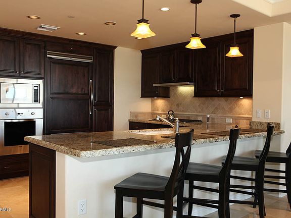 This beautiful 8th floor home has upgrades throughout and is a MUST SEE! Prime Location, fantastic floor plan with priceless views of the mountains and city. Travertine flooring, gorgeous kitchen with granite countertops, Viking appliances and more. Beautiful custom walk-in closets. Valet parking, 24 hour security, concierge service, access to club room, library, roof top pool and spa, fitness center and more. Underground parking garage with two assigned parking spaces. This is a great luxury, lock-and-leave home. Furniture is available for sale on a separate bill of sale. Owner financing available.