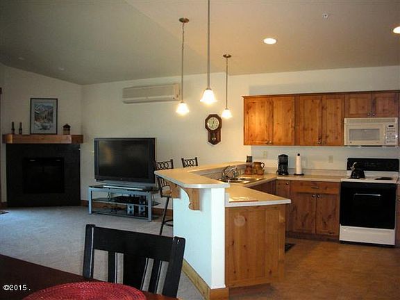 Remarks: Enjoy great views from this choice Waterside condo. Top floor features vaulted ceilings creating a large expansive feel. Condo is mostly furnished and ready to move into. Air conditioned. Walk to restaurants in the summer and skiing is a half hour drive in the winter. 1/3 boat slip ownership + garage/carport. Enjoy the hot tub, and fitness center on site. Unbelievable price of $329,000!! Call Ellie Stimpson-406-253-3308 or your real estate professional for more details.