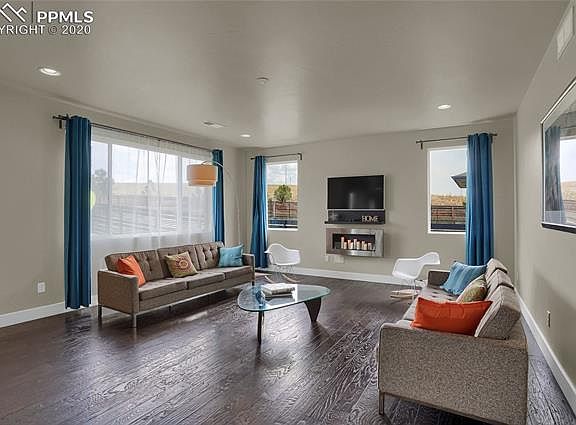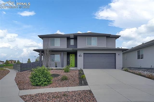 This 3,521 sq. ft. modern house is a hard find in Colorado Springs. It has 5 bedrooms, all with walk in closets, and 3 bathrooms. On the main level, there is a full office and a beautiful open kitchen/living/dining area. The kitchen has high-end Bosch appliances that are included in the house. Upstairs there is a second living space and an entire laundry room with built in cabinets. The backyard offers effortless outdoor enjoyment as it is xeriscaped with lush synthetic grass and has two separate patio areas. The backyard is surrounded by a painted fence and features a custom designed play set with a slide that matches the houseâs modern details and look. A relaxing day at the pool or an invigorating workout can be enjoyed at Villa Sport, just steps away from the house. The house has the electrical conduit for solar panel wiring and installation. LED lighting is utilized throughout the house. And lastly, there is a finished 2 full car garage!