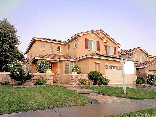 Breaking News!! Beautiful home located in one of the most prestige neighborhoods of Day Creek. *Located near the Day Creek Market, Sprouts, San Antonio Winery & Victoria Gardens. BUT there is more, property features 4 bedrooms(all have walk-in closet), 3 baths, 2 car garage, downstairs bedroom/bathroom perfect for guest room. Kitchen opens up to the family room with a cozy fireplace. Kitchen upgraded with custom built maple cabinets pull out draws granite counter tops with plenty of room and spacious breakfast bar and built-in wine cabinet. Family room offers a built-in entertainment center for a 70 inch TV/surround sound. As you enter the lovely court yard with double glass iron doors you step into the formal living & dining room with soaring ceiling and plenty of windows for natural lighting. Backyard offers pool, spa, barbecue island, refrigerator & sink. Great for entertainment. Master bedroom offers crown molding & opens to Master bathroom with separate shower/tub, separate cabinets with sinks and walk-in closet. Loft upstairs with built- in media center perfect for home office. Laundry located upstairs with plenty of cabinets space. Additional features 6 inch baseboards throughout, ceiling fans, tile flooring from entry with pathway to kitchen area and bathroom, plantation shutters throughout downstairs & master. SOLAR SYSTEM Included! Features 35 panels to maximize savings, keeping the home cool during summer heat & Pool equipment running! Huge Monthly Savings.
