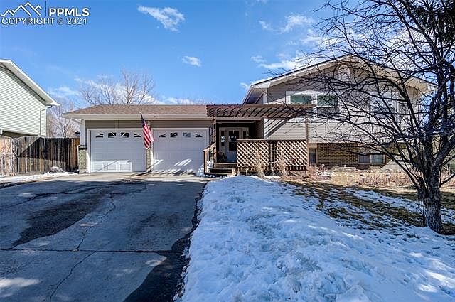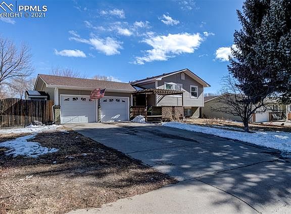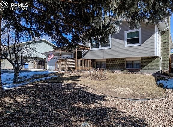 Beautiful 4bd/3ba bi-level home in established neighborhood. Front includes landscaping, rose garden, and large deck. Enter into open walk-out foyer w/nicely tiled flooring & skylight. Upper level features open living room & dining area w/ wood laminate flooring. Eat-in kitchen w/tiled flooring, great cabinet & counter space, and double ovens. Upper level also includes master w/adjoining private bath, additional bedroom & full bath. Upper bedrooms recently refinished with new laminate flooring, fresh paint, and smooth ceilings. Lower level features newer carpet, large family room with wood burning stove, 2 additional bedrooms, bathroom and office. Large fully fenced backyard offers large apple tree, 2 sheds & 25x14 covered concrete patio with additional storage and newer cover. Upgraded electrical, upgraded plumbing & much more! Close to Ft. Carson, Peterson AFB, Powers & I-25. Close to schools, shopping, restaurants & parks.