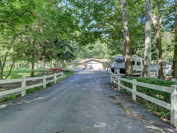 Ranch home in a woodland setting (2.7 acres)! Stroll up the walk to this home and be greeted by fresh landscaping, and an inviting double front door. Enter the home to a small foyer area with stone floor, opening up to this home's great room. The great room is large and has cathedral ceilings, with beams running across. Accented with a stone wall and wood burning fireplace. Imagine cozying up with family in the upcoming cooler months. This space opens up to a screened in porch with a wrap around deck for a perfect view of the picturesque backyard. If nature is what you love then move to this home. The dining room is open to the great room making it perfect for entertaining. With newer laminate flooring flowing to the kitchen. The kitchen has ample amounts of countertop and cabinet space, complete with tiled backsplash. There are three bedrooms and two and a half bathrooms. The master bedroom has a large master closet complete with en-suite. There is an attached two car garage as well as an additional two car garage that comes with the property. This would be a perfect man cave or bonus storage area. Schedule a walk through today!