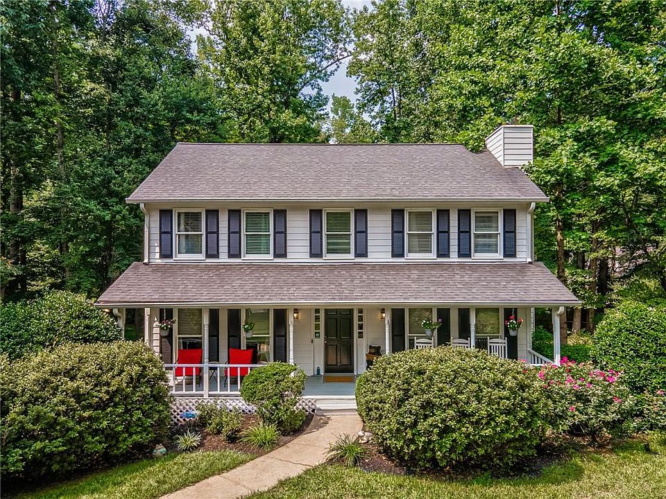 This charming home can be found in a culdesac lot a little over 1 mile from Downtown Alpharetta with a rocking chair front porch that will have you at hello! Refinished hardwoods on main and updated paint throughout! Two options for a living room space, one of which boasts of a gas fireplace and the other connecting to a separate dining area. Updated, eat-in kitchen features quartz countertops, tile backsplash and SS appliances. Exterior access to back deck off kitchen is perfect for entertaining and overlooks a level, fenced-in, private back yard. Primary bedroom boasts of vaulted ceilings and separate his + hers walk in closets with a beautifully renovated primary bathroom featuring tiled floors, a double vanity, stunning tiled shower w/ separate soaking tub + commode room. 2 secondary bedrooms and an udpated secondary bathroom can also be found upstairs, along with a secret bonus room, perfect for a home office. Freshly finished basement offers an additional bedroom and bathroom, perfect for a MIL / Teen suite. This one won't last long, folks!! Welcome HOME!