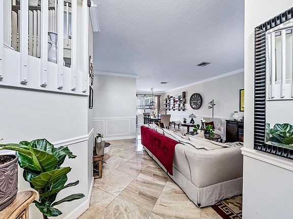 Nestled in the sought-after area of Western Lake Worth, this property is set in an outstanding community, boasting a well stocked-lake, and luscious landscaping showcase this desirable neighborhood. This home offers not only four bedrooms but also includes an office/den, which can easily serve as a fifth bedroom, catering to your family's needs. The kitchen features granite countertops, custom wooden cabinetry, and a built-in pantry complete with a wine cooler. The expansive ground floor unfolds into separate living spaces, all oriented towards an inviting patio and screened pool area, complete with a pergola--perfect for hosting gatherings. Elegant porcelain tiles pave the main floor, complemented by crown molding throughout, adding a touch of sophistication. Convenience is prioritized with an interior laundry room, Nest AC thermostat for climate control, and a comprehensive security system with cameras for peace of mind. Located in the Northtree community, this home is positioned advantageously close to highly-rated schools, plenty of dining and shopping options, and provides easy access to I-95 and the Florida Turnpike, ensuring seamless connectivity to the wider area. Don't miss your opportunity to see this one before it's too late!