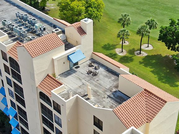 Wait until you see this one of a kind Promenade apartment! Expanded living space to include over 2100 square feet! Popular Brittany model with three bedrooms and three full baths! The apartment features a private rooftop patio with over 1400 sq ft. The elevator opens right to your private entrance so no neighbors and no one above you! Condo being sold fully furnished and equipped! Fabulous city, lake, and golf views. Marble and laminate flooring. Redone kitchen with Corian counters, stainless appliances. King size bed in master bedroom, Queen size bed in second bedroom, and double sized sofa sleeper. Very close parking space. Membership to Boca Pointe country club optional, but available.