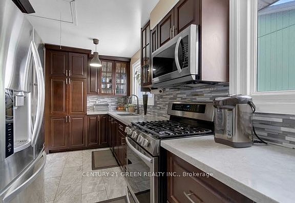 Check this out! spacious 4+1 bedroom, plus small nook enough for office use, huge sun room walk out to gorgeous yard, lots of upgrades, metal roof, pot lights, no carpet, hot and water tank owned, , no neighbors at the back, walk to school, 5 minutes Pearson International Airport, walk to Rexdale TTC loop to catch the bus going to Finch subway station.