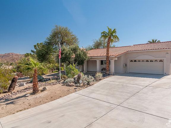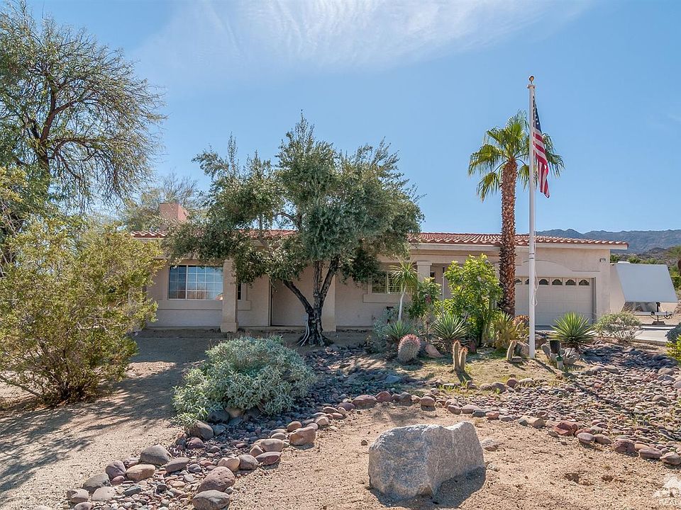 Reduced - $50,000 - Situated on 1 Acre of land in Cahuilla Hills South Palm Desert just minutes from downtown offering a low density peaceful and private lifestyle. Older home that has been updated and square footage added. Light and bright floor plan with separate living and family room with cozy fireplace. There are 3 bedrooms 2 baths, including spacious and private master suite. Just outside you'll find a covered patio & above-ground spa. Outdoors you will find a spacious patio with artificial turf and low maintenance desert landscaping with various fruit species, cactus, you name it. RV Parking, large extra metal garage/storage/work shop for the car collector, contractor or hobbyist. There is also an additional two car attached garage. Solar system leased! A must see property!!