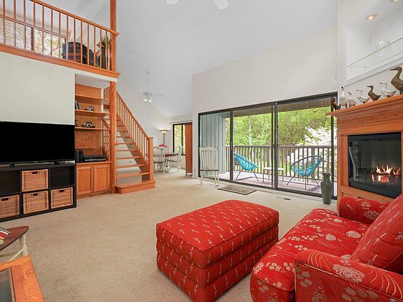 Main floor primary suite with enormous walk-in closet, soaring ceilings in the family and dining rooms, high-end electric fireplace in living room, maple cabinetry in the kitchen with stainless steel appliances and a private balcony looking out onto lush landscaping make this upper unit highly desirable. The upstairs loft serves as a second bedroom (or library/office/den) and is accessed by a beautiful and quality custom staircase. The massive attic space can be converted into another room and full-bath if desired. Otherwise, as is it serves as additional and plentiful storage space. New heater and air conditioner as of 2021. Smart Nest Thermostat. Situated right down from the forest preserve and the walking path, it boasts a prime Lake Barrington Shores location. There is nothing to do, but move right in and begin enjoying this private and airy unit and all that Lake Barrington Shores has to offer!