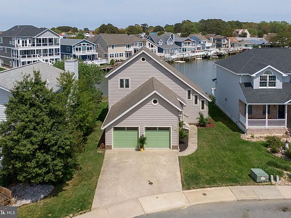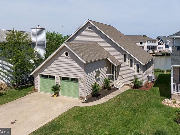 TERRIFIC WATERFRONT LOCATION! BEAUTIFUL WATER VIEWS! This lovely 3 BR 2 BA home is located at the end of a large basin that leads out to what the locals call "The Fenwick Ditch" and out to the open bay! The large waterfront 2 level back deck offers open bay views and lots of area for the entire family to enjoy being outside on the water. The boat dock and lift are right out your back door! You see the water as soon as you walk in the front door and enter the large living area with vaulted ceilings. The kitchen has been totally redone with granite counter tops, stainless appliances and custom cabinets and yes you look out at the water from both the kitchen and dining area. There is also a sun porch off of the dining area where you can relax and enjoy the views all year long! There is a convenient bedroom and bath on the 1st floor. Upstairs are 2 additional bedrooms both with lots of windows and a large deck with fabulous views overlooking the water. Interior features include ceiling fans, ceramic tile, energy efficient windows, recessed lighting, crown molding, and an attic with pull downstairs. The 2-car garage features two separate doors, both with remote access, and a high ceiling that provides lots of storage and a 2nd attic with pull downstairs. This home is at the end of a quiet cul-de-sac that overlooks the bay where you can watch the beautiful Ocean City sunset! Located in the popular residential area of Caine Woods in North Ocean City where you are close to restaurants with easy access by boat! This unique property is for those that are looking to really enjoy open water views and direct access to the bay!