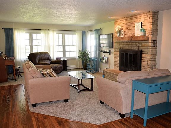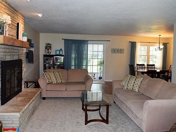 Ready to go roomy ranch with 1,688 sq.ft. on the main level includes 4 bedrooms that have hardwood floors & all are a good size, 2 full updated baths, large living room with wall of windows, gas fireplace that is wrapped with stone & plush new carpet. Desired open living & dining area has sliders out the back of the house that open to bright 23 X 9 ft. sun room & nicely landscaped oversized yard. Beautiful custom cherry kitchen with center island has sliders out to big deck across the back of the house. Lower level has approximately 1,200 sq.ft. finished with huge family/rec room, another gas fireplace, 5th non-conforming BR with walk-in closet, big 3rd bath with walk-in shower, plenty of storage area in the storage/utility room that has built in shelving. Steps up and out from the lower level to the 2-car attached garage that has storage area above. Low maintenance steel siding and the windows have been replaced. Come check out this well maintained, nicely updated, spacious, value priced home before its gone. Lower level finished sq.ft. is approximate