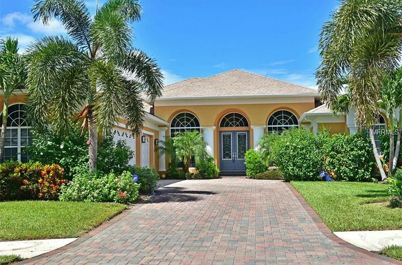 AWC - Taking Backup Offers This fantastic 2006 NW Bradenton residence is located in a cul-de-sac in a small private enclave of custom built homes in Mahogany Bay. The floorplan features a flowing 3000+ sf of living area with 4 bedrooms and 3 baths designed to incorporate views of the pool and sheer descent waterfalls from many of the rooms including the bonus room. Amenities showcase stunning coffered ceilings in the formal living & dining room with recessed lighting, 18 x 18 porcelain tile on the diagonal, silhouette shade window treatments, plantation shutters, volume ceilings, gorgeous built-in entertainment center, fireplace, central vacuum, motion detector security system, pool alarm, In-wall Pest Defense system, 3 car garage, pavered driveway & metered sprinkler system. The kitchen features granite countertops, European cabinetry, a prep island, S/S appliances, warming tray, breakfast nook with aquarium windows, barstool counter and pantry closet. The 24 x 14 Master Suite includes a generously sized sitting area with views of the saltwater pool, spa and private backyard. Activities for the outdoor enthusiast abound from bicycling, fishing, hiking or kayaking at Robinson's Preserve to walks at the DeSoto National Memorial Park or escape to Bradenton's beautiful beaches just six miles away! Shop for fresh produce from Geraldson's Farm half a mile away or enjoy delicious fruit from your own mango, guava and lime trees. This home is move-in ready and an absolute pleasure to view! Be sure to view the Virtual Tour.